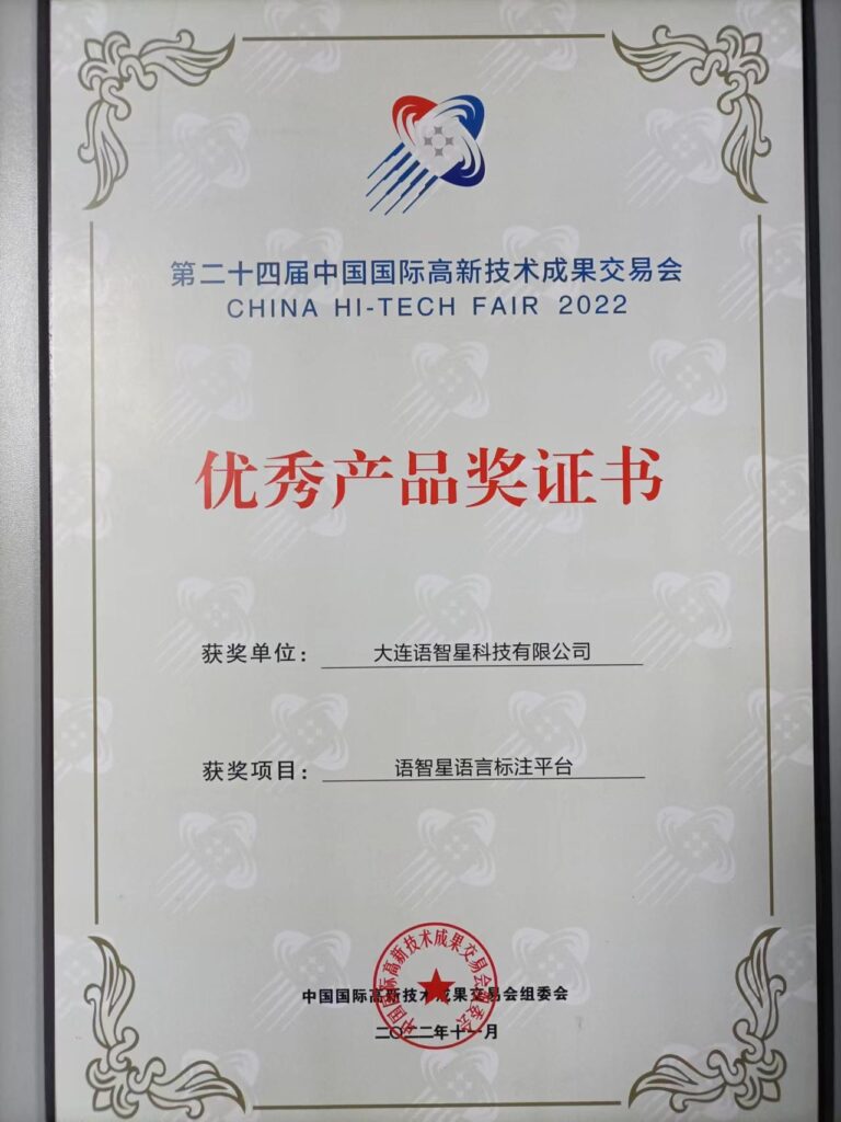 • 2022年参加第24界中国国际高交会,“语智星语言标注平台”获得优秀产品奖。