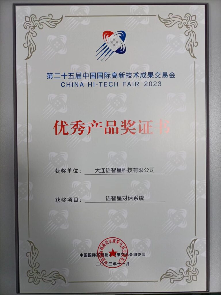 • 2023年参加第25界中国国际高交会,“语智星对话系统”获得优秀产品奖。