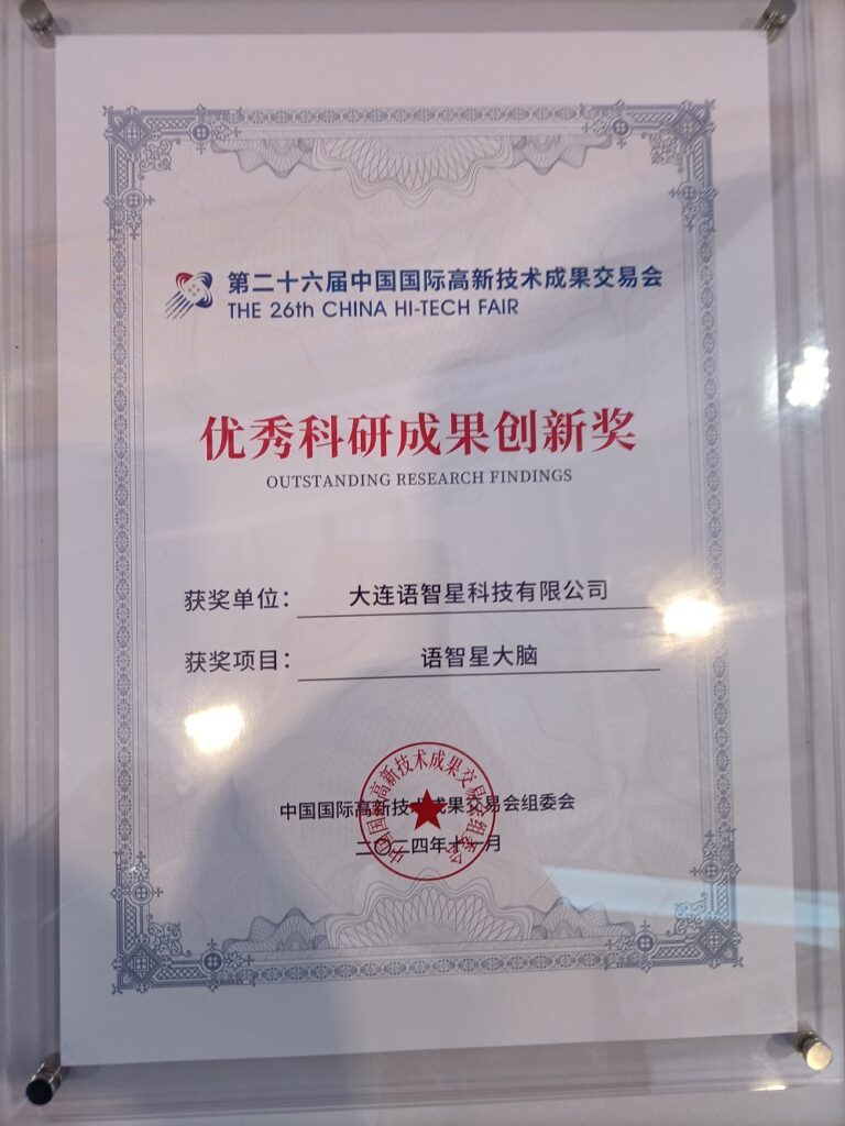 • 2024年参加第26界中国国际高交会,“语智星大脑”获得优秀科研成果创新奖。